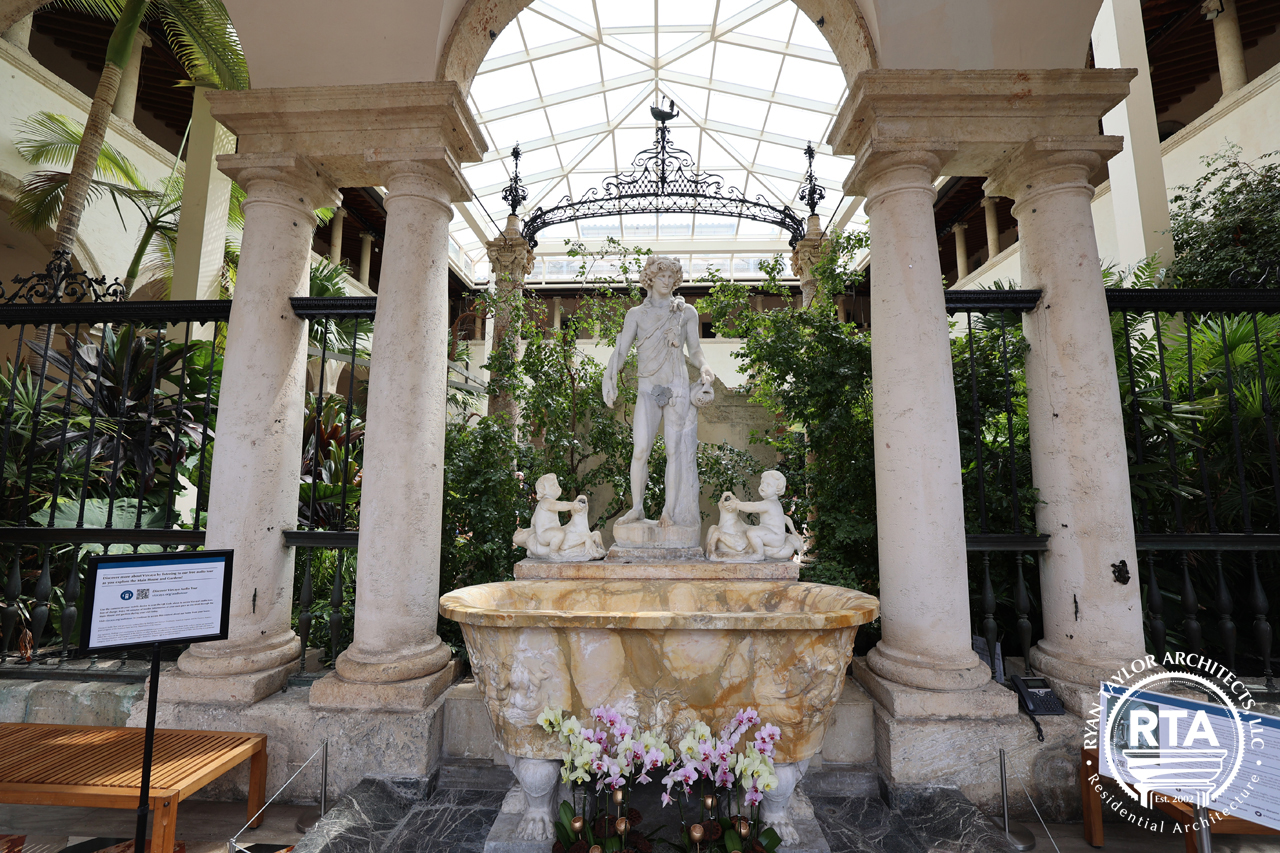 While the interiors of the house transport the visitor to the fine rooms of an eighteenth-century Italian villa, the gardens also contain a collection of statues, busts, vases, urns, fountains and hardscape that makes Vizcaya unique among American country houses.